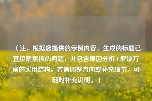 路由器性能不足、Wi-Fi信号干扰、后台程序占用带宽等均可能导致延迟。