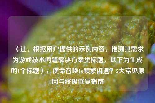 《COD16频繁闪退?五大原因及解决 *** 全解析》 ,《使命召唤16:现代战争》玩家常遭遇游戏闪退问题,本文总结五大常见原因及对应解决方案:1. **硬件配置不足**,需检查是否满足更低要求,建议升级显卡驱动;2. **系统兼容性问题**,可尝试以管理员身份运行或兼容模式启动;3. **游戏文件损坏**,通过战网客户端验证文件完整性;4. **后台程序冲突**,关闭杀毒软件或其他占用资源的程序;5. **过热或超频不稳定**,需优化散热或恢复默认频率,更新操作系统补丁、调整游戏画质设置也可能有效,若问题持续,可联系官方支持或查看社区论坛获取更多针对性建议。