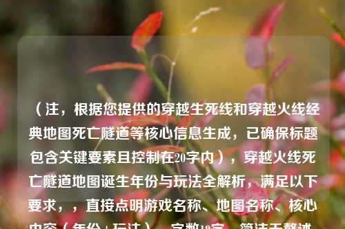 《穿越火线》(CrossFire,简称CF)作为一款风靡全球的射击网游,自2007年上线以来推出了众多经典地图,死亡隧道”(后更名为“死亡十字”)因其紧凑的布局和高强度对抗,成为玩家记忆中的标志性场景,这张地图究竟诞生于哪一年?它又有哪些独特魅力?