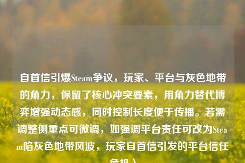 这些操作长期游走在Steam用户协议的边缘,而“自首信”作者却以极端方式将其公开化,声称“良心不安”,希望平台加强监管。