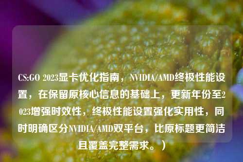,【NVIDIA显卡优化】,1. 控制面板开启"高性能模式",关闭垂直同步;,2. 电源管理模式选"更高性能优先";,3. 纹理过滤质量设为"高性能";,4. 在程序设置中为CS:GO单独启用低延迟模式(Ultra)。,【AMD显卡优化】,1. 禁用Radeon Anti-Lag以外的所有增强功能;,2. 纹理过滤等级调至"性能";,3. 启用GPU缩放并锁定刷新率;,4. 关闭FreeSync(竞技模式建议禁用)。,通用建议:更新至最新驱动,游戏内设置建议将全局阴影效果调至"低",多核渲染务必开启,N卡用户可搭配NVIDIA Reflex低延迟技术,A卡建议开启Radeon Boost动态分辨率功能(需手动设置快捷键),注意:部分设置可能增加功耗与发热。