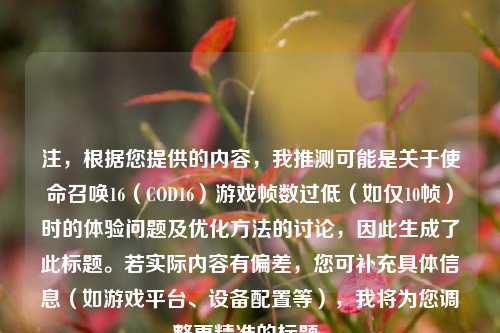 《使命召唤:现代战争》(COD16)作为一款以快节奏和精准射击为核心的之一人称射击游戏,对硬件性能要求较高,部分玩家反馈在游戏中遭遇帧数骤降至10帧的情况,严重影响了操作流畅性和体验,本文将探讨低帧率的成因、影响,并提供可行的优化方案。