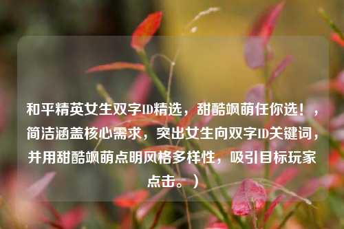 ** ,《和平精英》快速提升实力的关键在于系统训练与策略优化,熟悉地图点位、枪械后坐力及战术配合是基础,建议通过训练场练习压枪和身法,多观看高手直播或赛事,学习走位、掩体利用和团队协作技巧,合理调整灵敏度设置,找到适合自己的操作手感,心态上保持冷静,避免盲目刚枪,优先保证生存率,与固定队友磨合战术,提升沟通效率,能显著提高吃鸡概率。 ,**双字ID女生游戏名推荐:** ,1. 甜柚 ,2. 奶糖 ,3. 樱落 ,4. 酥梨 ,5. 桃夭 ,6. 薄荷 ,7. 鹿柒 ,8. 星晚 ,9. 兔绒 ,10. 雾月 ,(名字风格偏向清新可爱,符合女性玩家审美,可搭配符号或重复字如“甜柚゛”“桃夭夭”等增加独特性。)